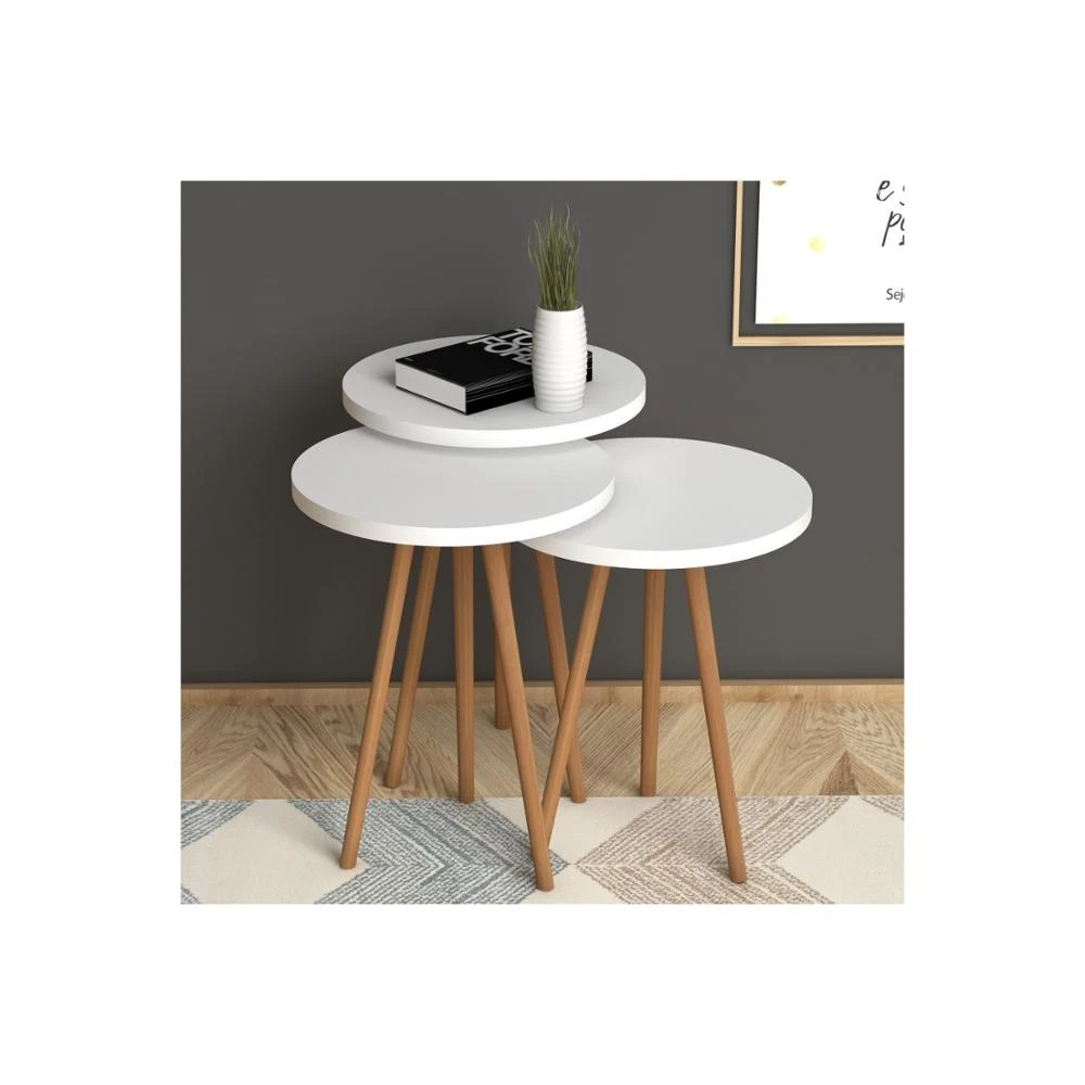 صنع في تركيا 3 قطع طاولات قهوة بيضاء صغيرة حديثة عملية دائمة طاولات الشاي غرفة المعيشة زيجون الخشب اكسسوارات